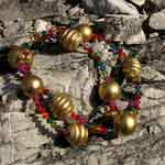 Fossiljaspis mit Goldkeramik Goldkeramik mit Swarovskiglasperlen Perlenkette mit Goldkeramik